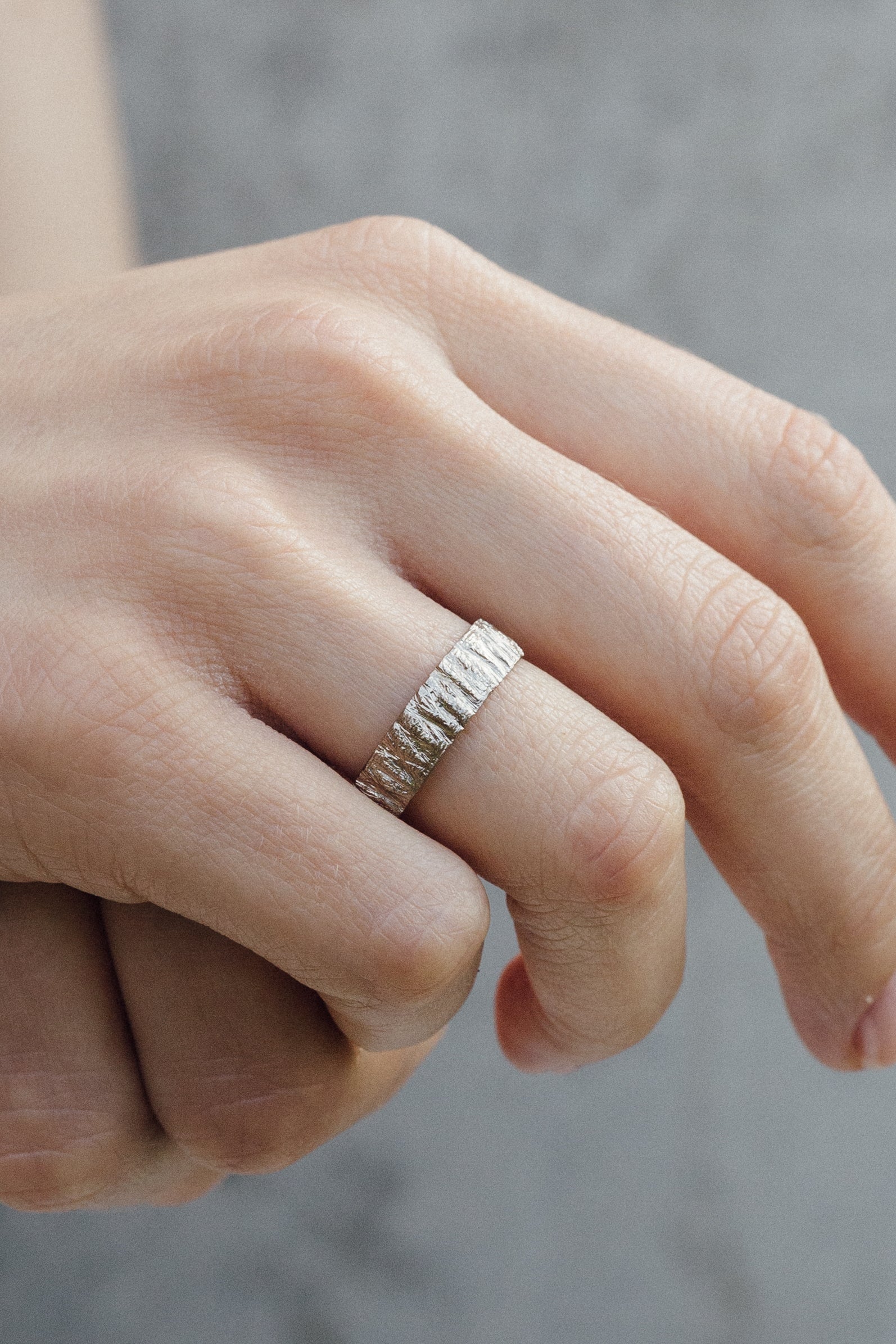 Este anillo viene empacado en un tronquito de cedro, canelo o roble. Estos llevan semillas de lavanda en su interior que se mezclan con el olor de la madera. Cada caja es única, como nuestros anillos.