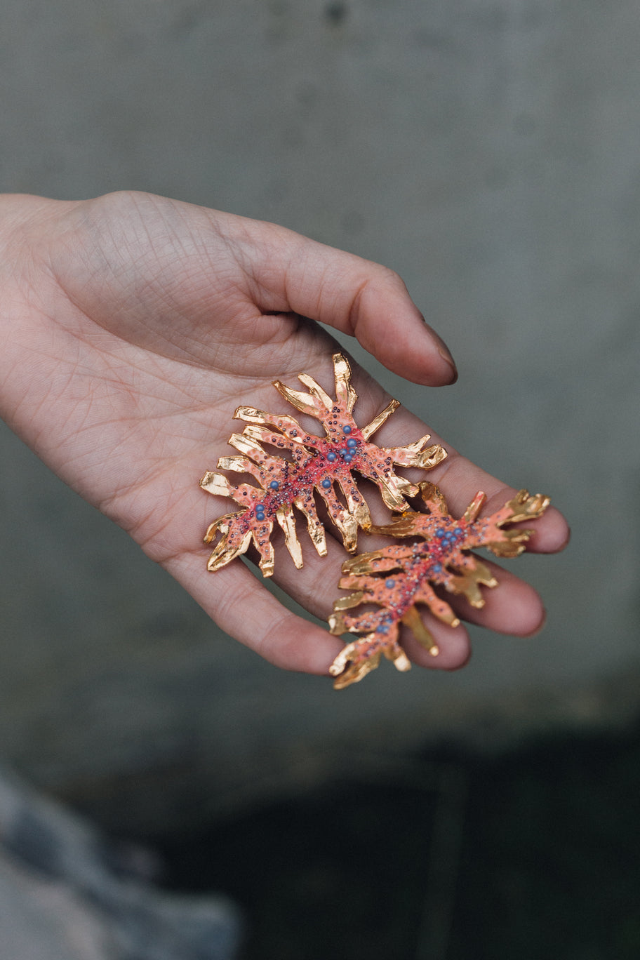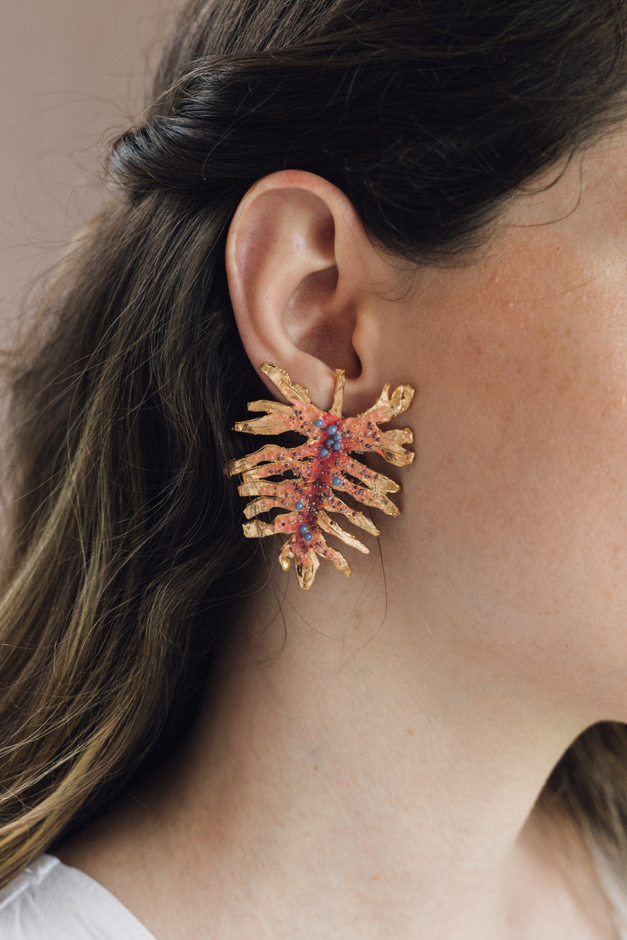 - Bronce con baño en oro, pintado a mano con granulación de vidrio.