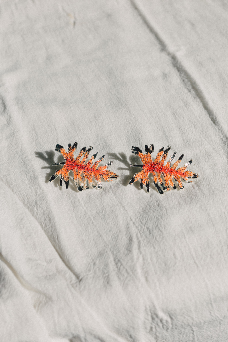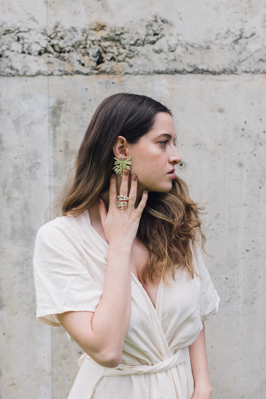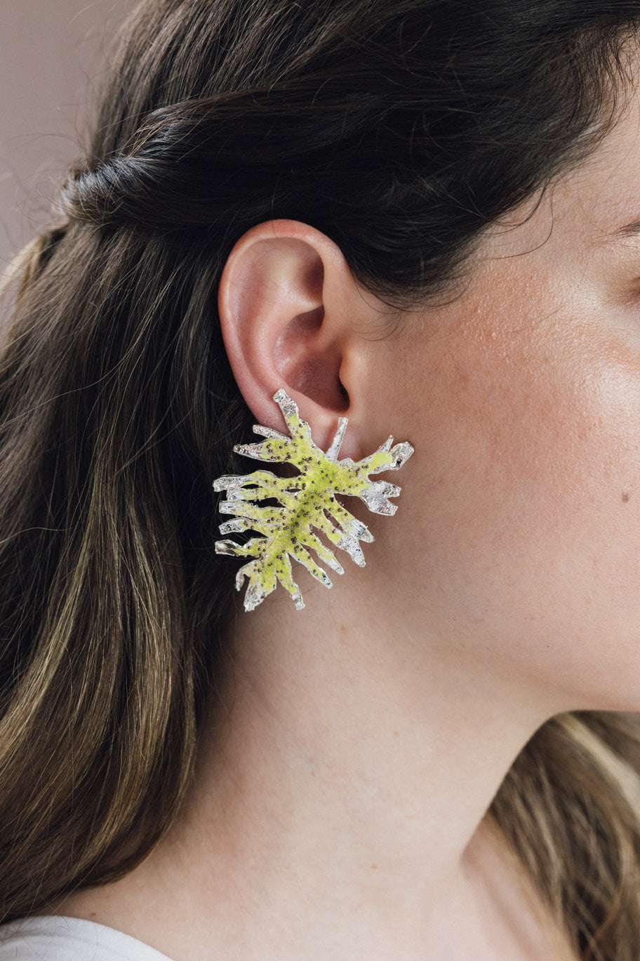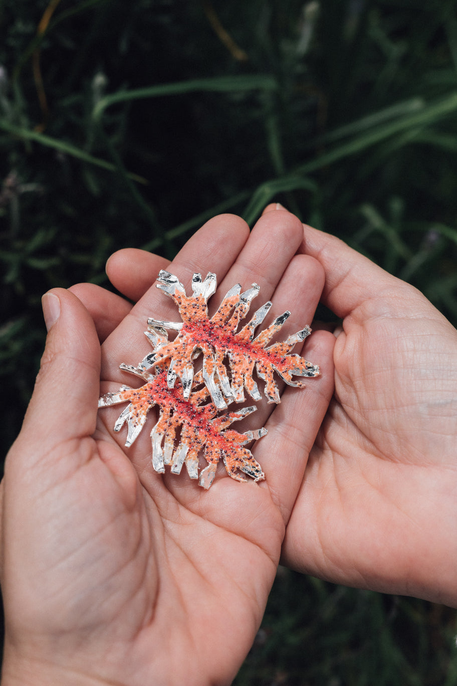 - bronce con baño en plata, pintado a mano con granulación de vidrio.