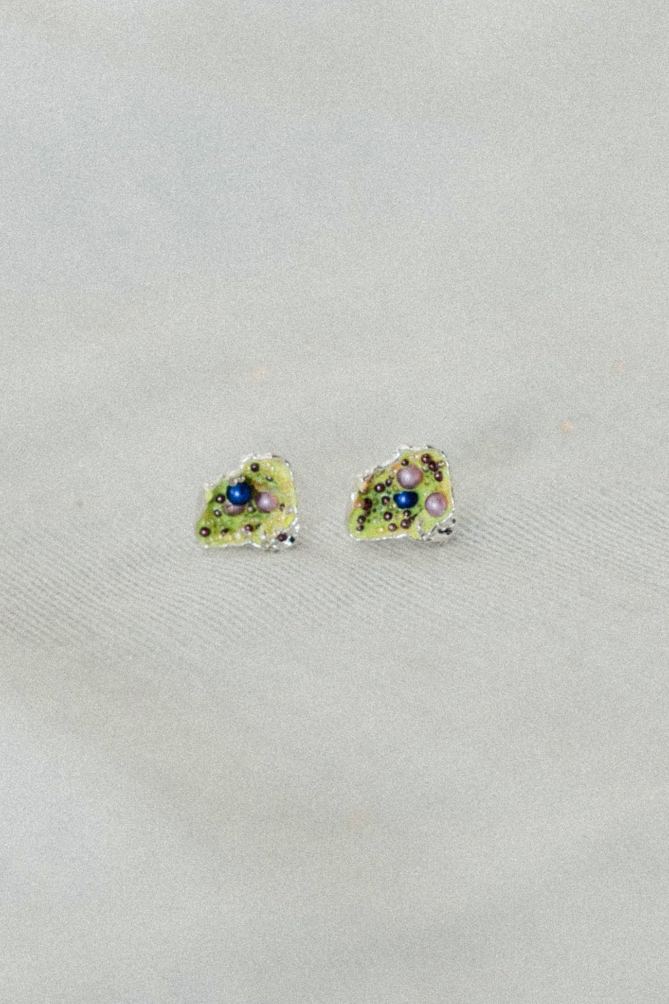 - Material: bronce bañado en plata ley 925, pintado a mano con granulación de vidrio.