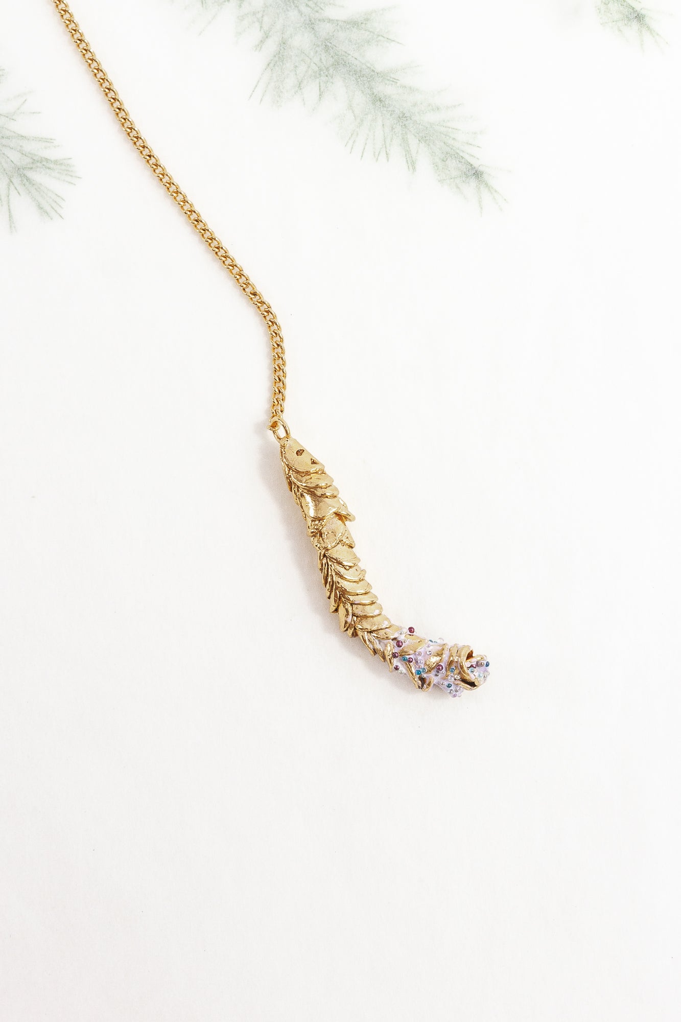 Cada pieza de esta colección es creada una a una, observando las plantas y nuestro entorno. Se modela primero en cera, se funde en metal y luego se baña y se pinta cuidadosamente, también una a una, un proceso lento... artesanal