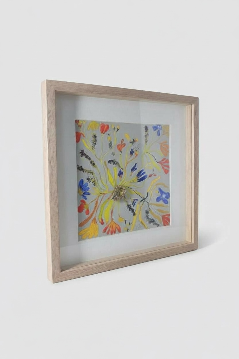 Es una mezcla de colores y formas que evocan malezas, lavandas, laureles, espigas y pequeños frutos. Son piezas que respiran campos abiertos y una naturaleza espontánea, delicada y vibrante.