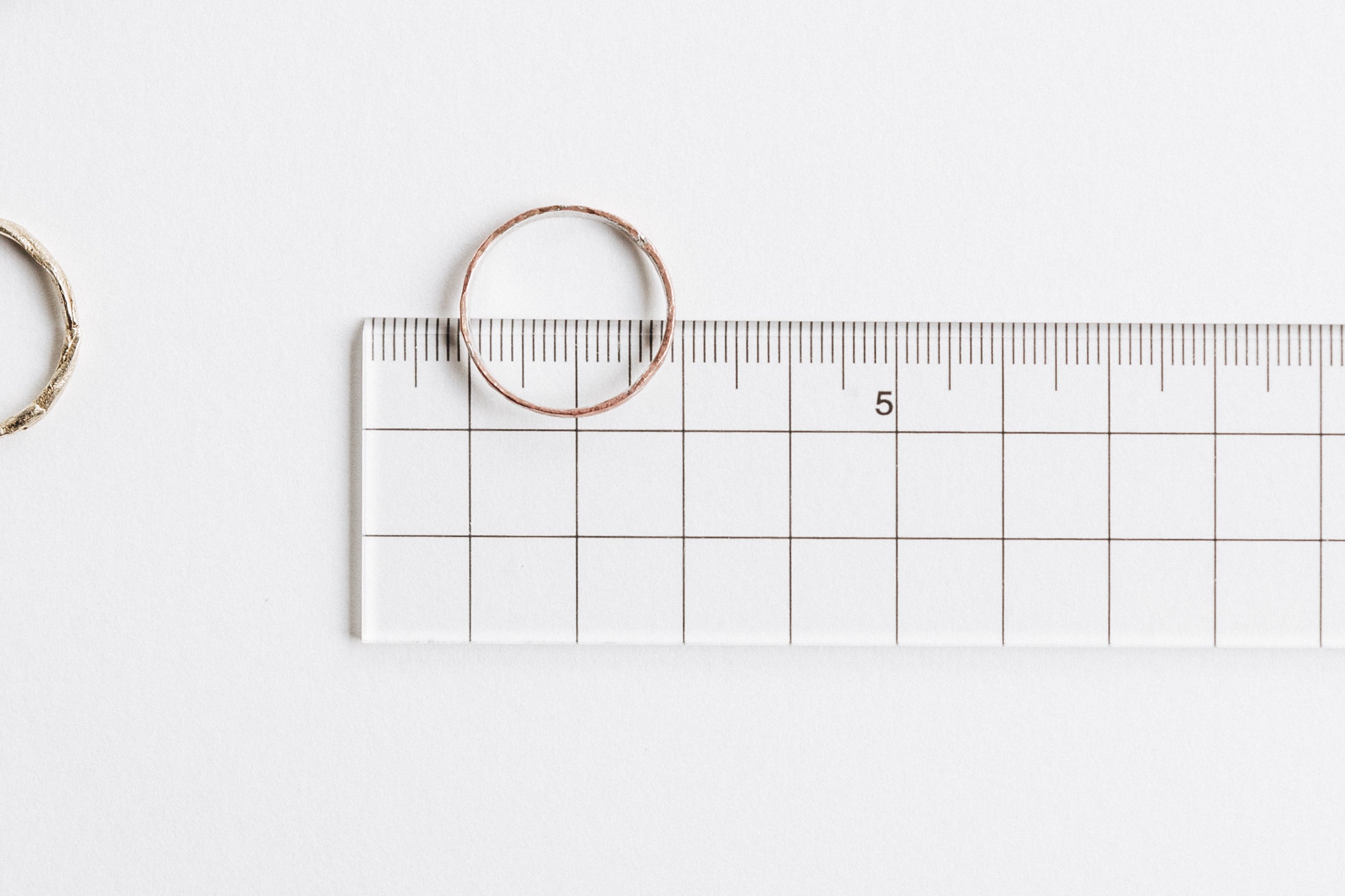 - Coloca el anillo sobre una regla o cinta métrica, visto desde arriba.