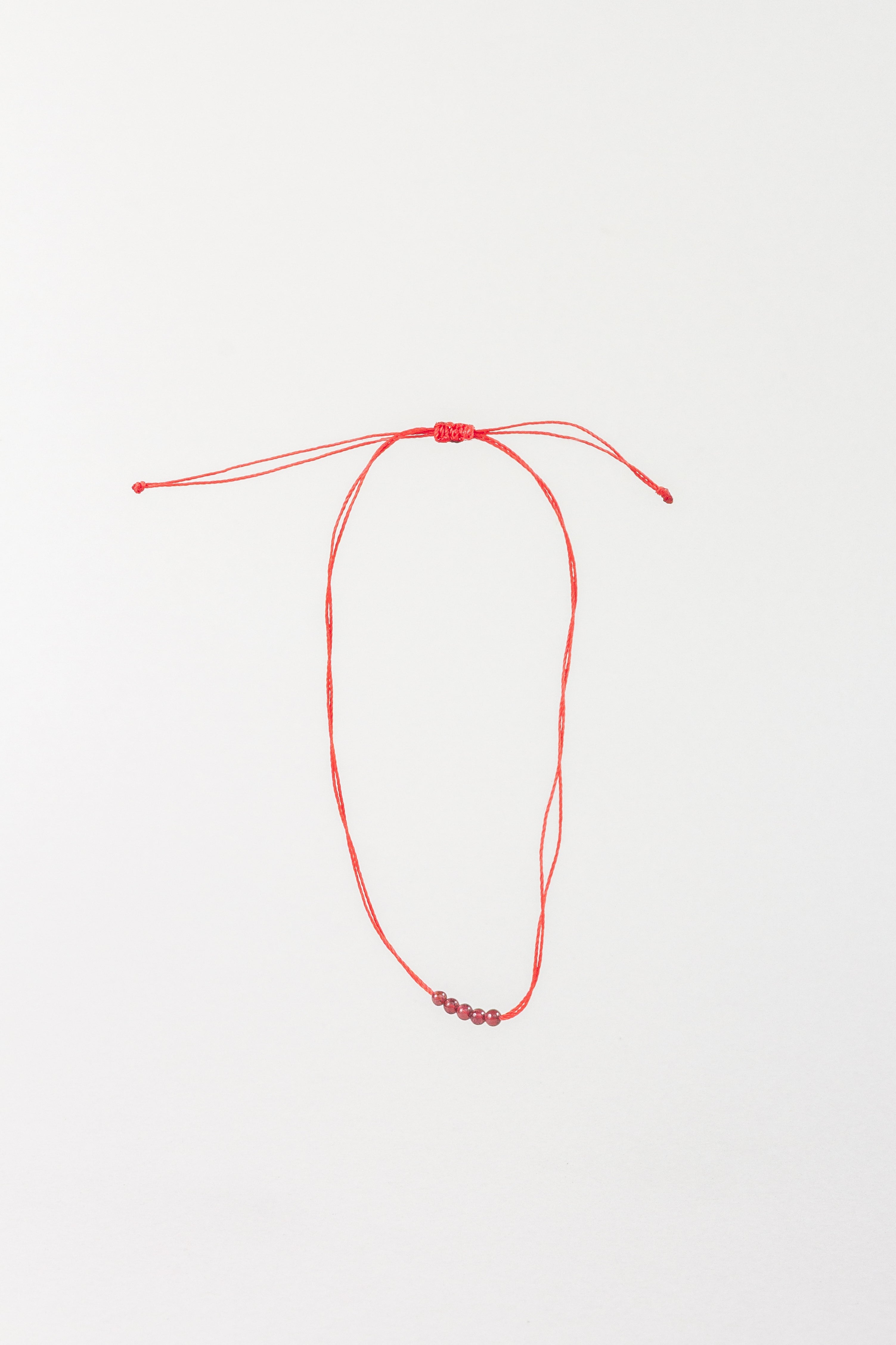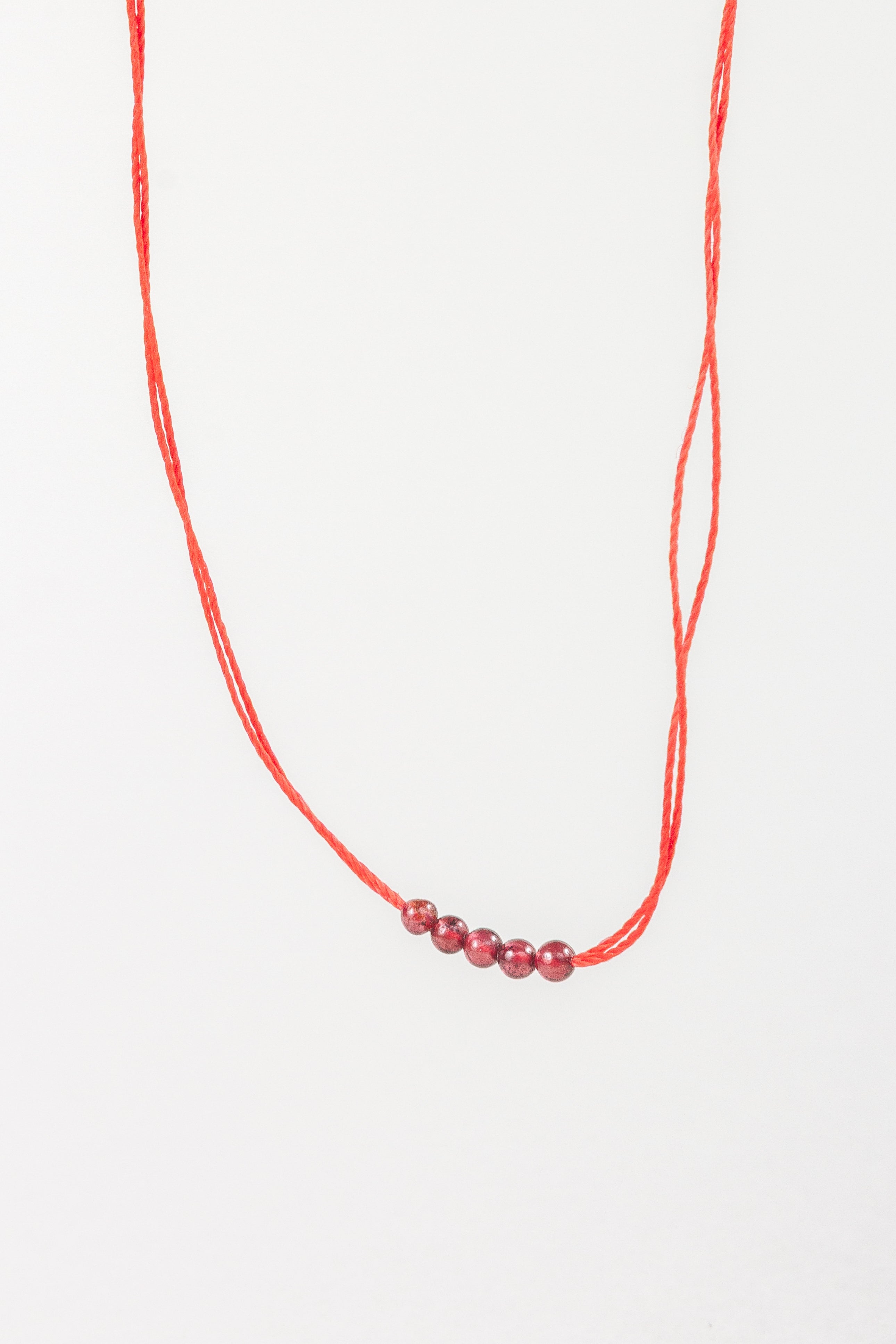 - Material: 5 ágatas rojas + cordón de algodón y nylon.