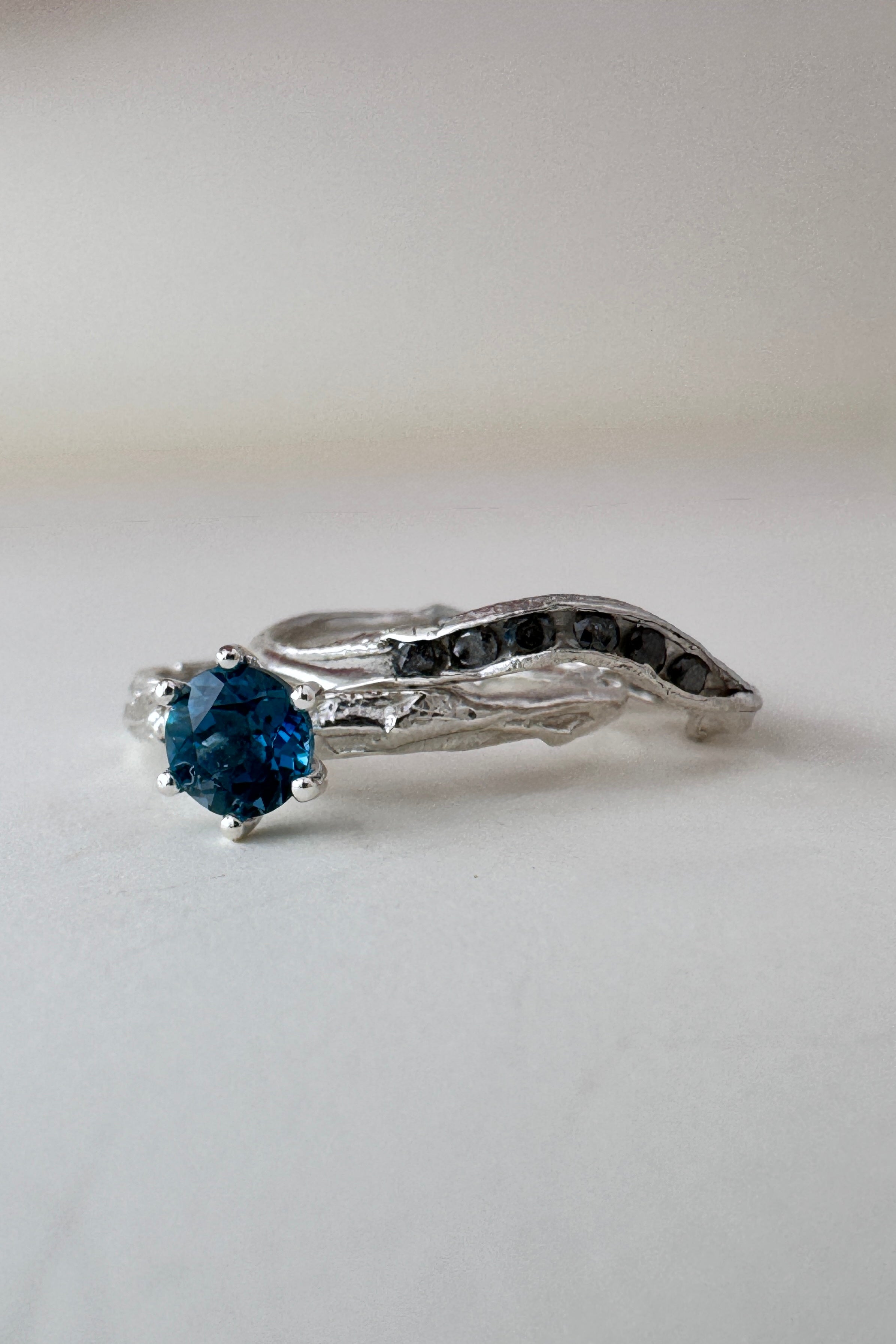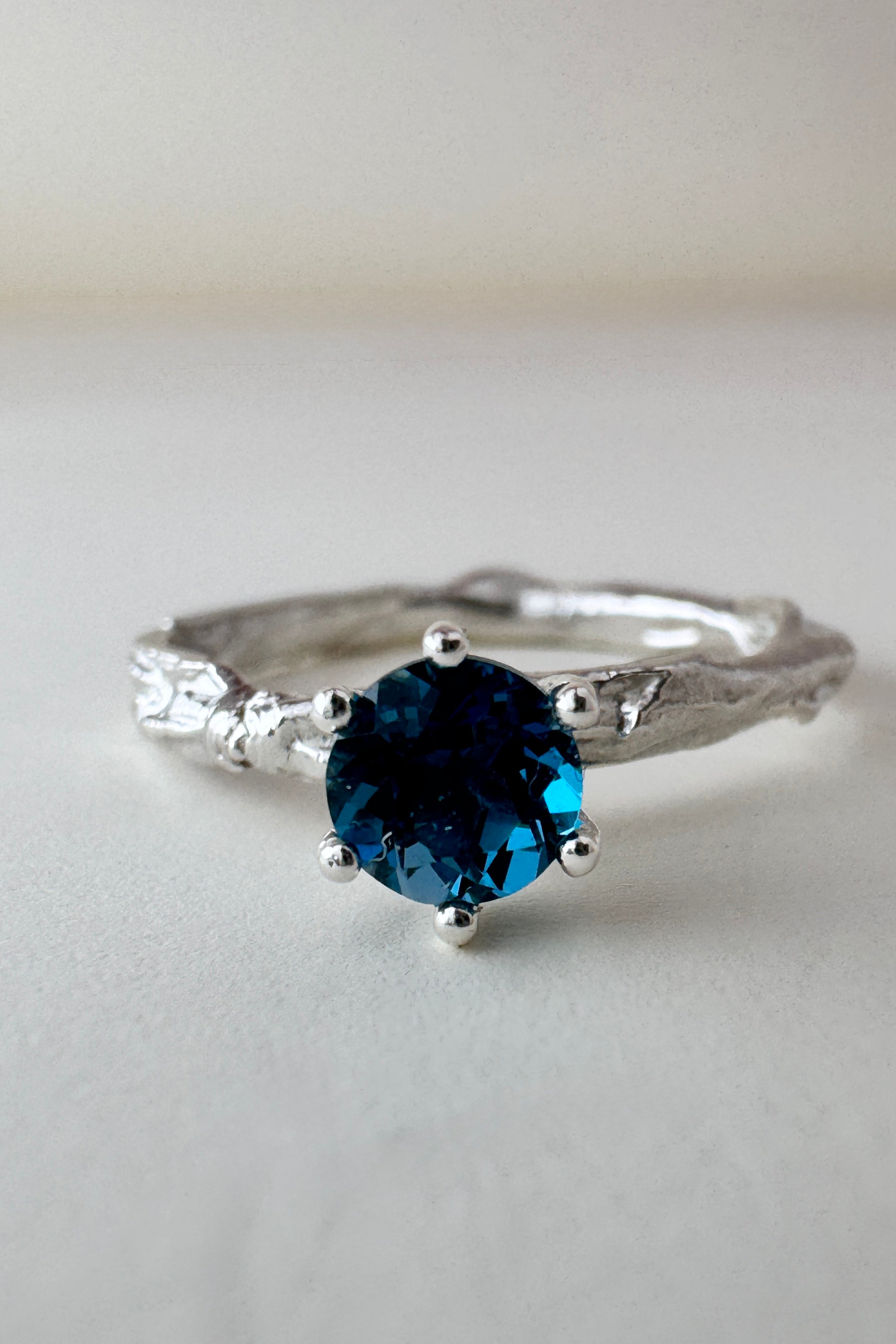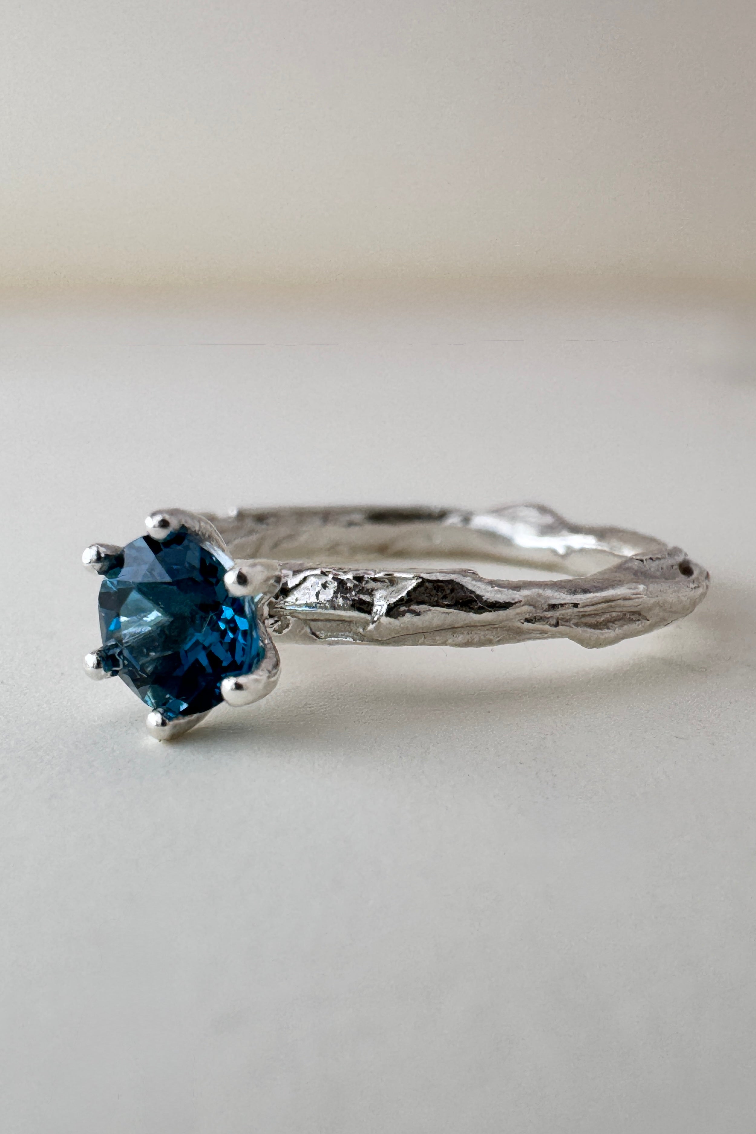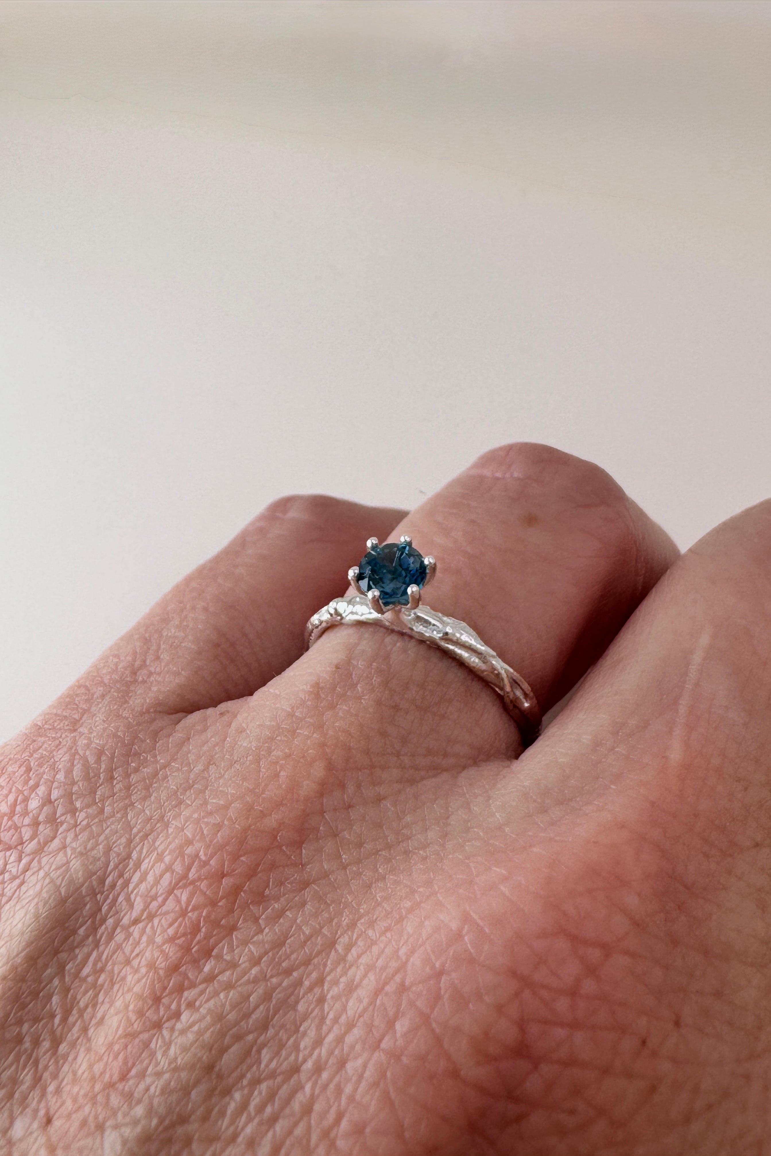Este anillo viene empacado en un tronquito de cedro, canelo o roble. Estos llevan semillas de lavanda en su interior que se mezclan con el olor de la madera. Cada caja es única, como nuestros anillos.