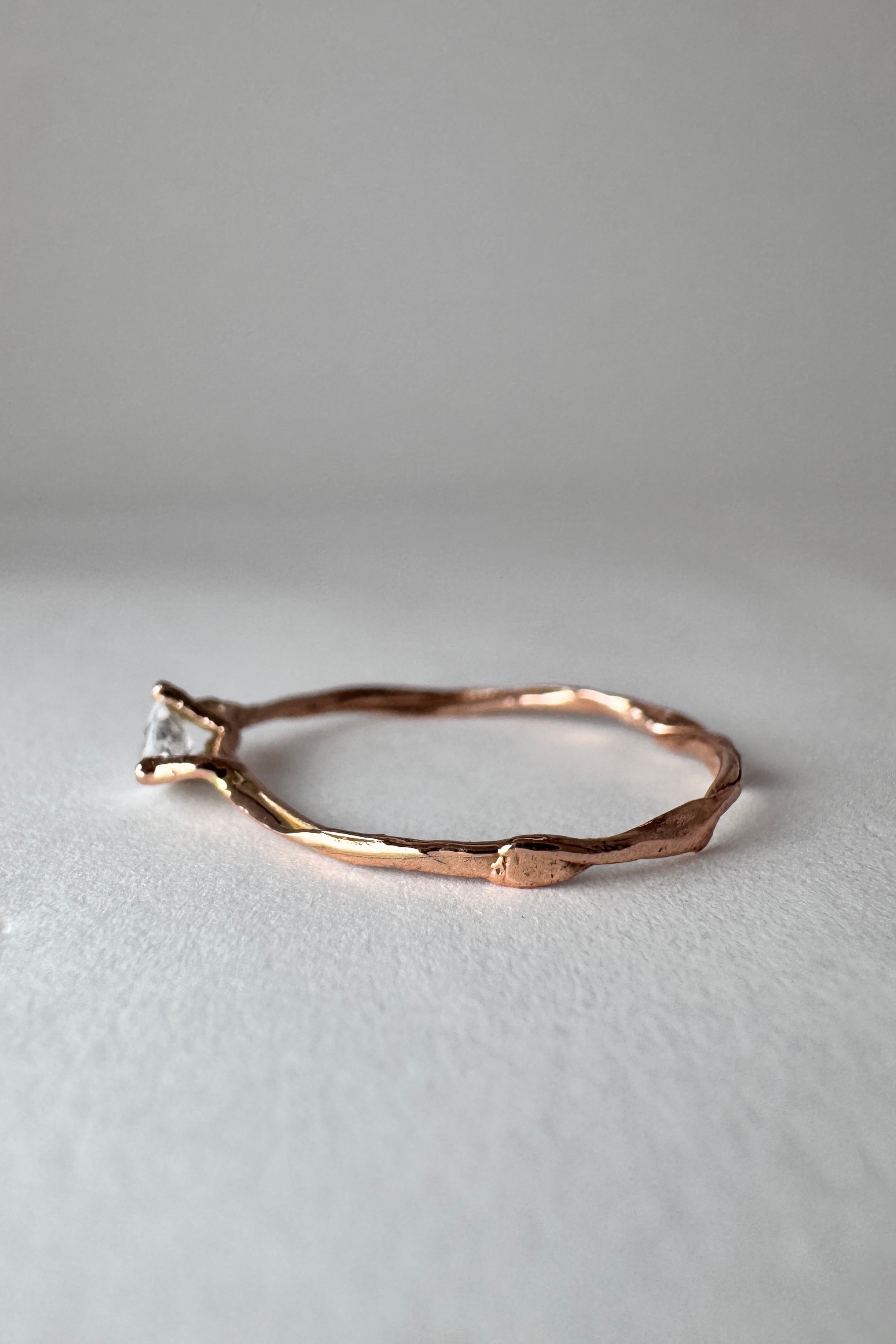 Este anillo viene empacado en un tronquito de cedro, canelo o roble. Estos llevan semillas de lavanda en su interior que se mezclan con el olor de la madera. Cada caja es única, como nuestros anillos.