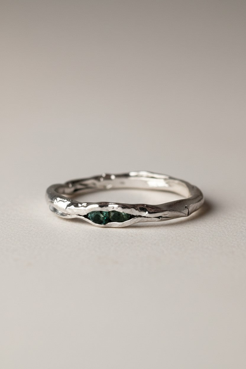 Este anillo viene empacado en un tronquito de cedro, canelo o roble. Estos llevan semillas de lavanda en su interior que se mezclan con el olor de la madera. Cada caja es única, como nuestros anillos.