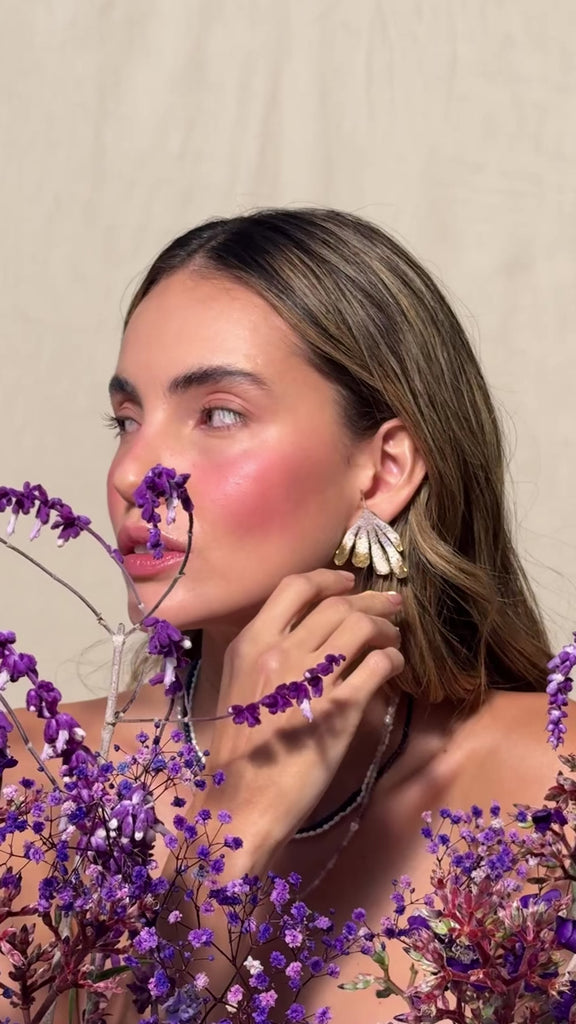 Cada pieza de esta colección es creada una a una, observando las plantas y nuestro entorno. Se modela primero en cera, se funde en metal y luego se baña y se pinta cuidadosamente, también una a una, un proceso lento... artesanal.